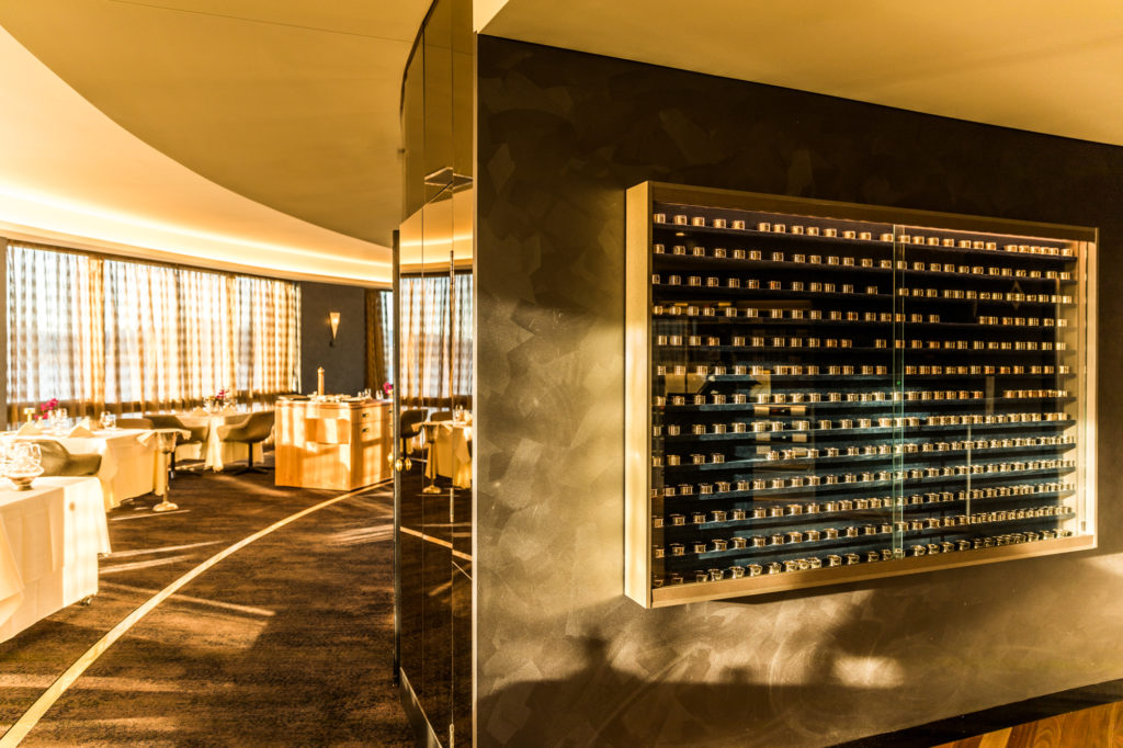 So, how do you light a restaurant where the people and furniture are constantly in motion? The answer for Wood and Grieve Engineers Specialist Lighting was a two part solution. Any direct light would put diners in and out of shadows so an ambient, indirect solution was employed. LED strip lighting experts Coolon were called upon to provide a solution that could deal with the curvature of the room whilst providing the uniformity and output required from what was a small, existing cove. This removed all the shadowing issues but does leave a space feeling flat and two- dimensional. The clever solution was to supplement the lighting with individual table lamps that were rechargeable and therefore dealt with the issue of not being able to get power to the tables. This provides the necessary sparkle to the patrons faces and all added up to what is a relaxed and intimate feel, where diners are able to enjoy their meals, their fellow company and off course, those magical views.